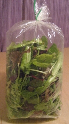 20. Blow into a bag and seal it tightly. The CO2 will keep it from becoming soggy and you will have fresh greens for a long time.