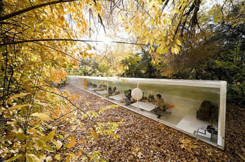 This inspiring studio of Selgas Cano Architecture located in the woods in Madrid-Spain, serves as an inspiration for all who work there. Half of the office space is underground and the other half has glass ceiling, bringing nature closer to the employees. No matter if you´re inside or outside the view is fantastic.