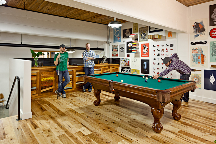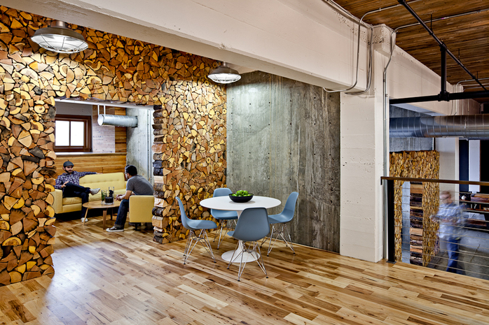 This is a company that knows the importance of a happy and comfortable work environment.The design of this office involves a lot of reclaimed or recycled materials such as old street signs, a salvaged pizza oven and a wood from a barn and a church. But just because they’ve used old materials, doesn’t mean the design has to suffer as the attention to detail and finish is superb, and the mix of raw materials really help it to stand out. To top it all off, the office is finished with a bearskin rug, which is rather suiting I think.