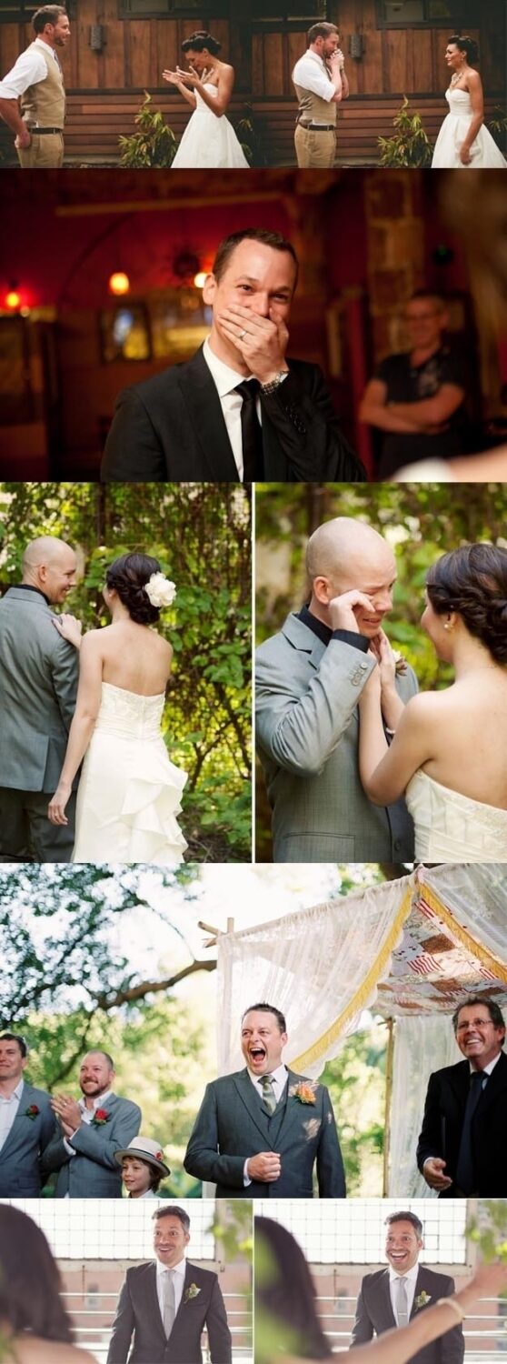 8. These photos of grooms seeing their brides for the first time: