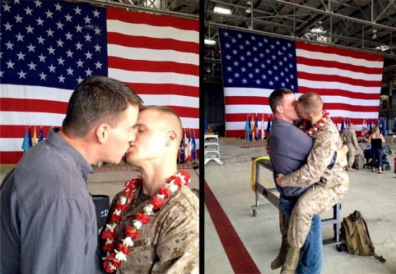 7. U.S. Navy Petty Officer 2nd Class, Marissa Gaeta is the first off the ship to kiss her girlfriend upon returning home to Virginia Beach, 2011.