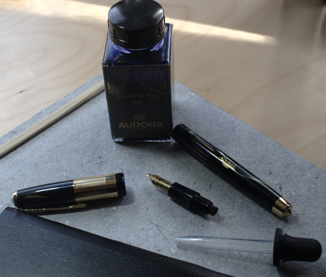 1. Fountain Pen with ink bottle: