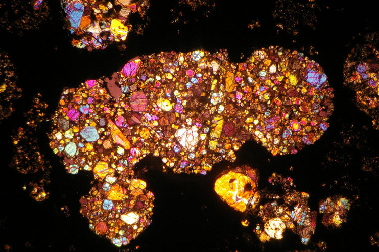 On the outside meteorites look like volcanic rocks. But astronomy photographer Jeff Barton cracked them open to reveal the glittering geodes inside. To capture the stunning shots of meteorite guts, Barton cut the rocks open with a rock saw with a diamond-coated blade. He then ground down a stamp-sized piece so thin light can pass through it, like the sun through the windows of a cathedral. Photos are subsequently taken with polarizing filters and a DSLR attached to a petrographic microscope. Aren’t they just beautiful? I wish I could wear one on a necklace.
