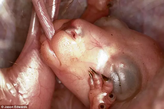 This rare image comes from the pouch of a mother kangaroo, where a kangaroo joey grows in peace. Baby kangaroos after being born are transferred to the pouches of their mothers for completion of their growth. FYI: Female kangaroos can determine the sex of their offspring. They can even delay gestation when environmental factors are likely to diminish the chance of young surviving.