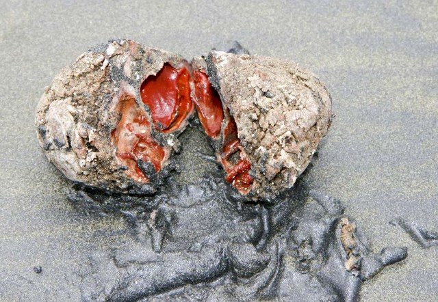 Sometimes referred to as a ‘living rock’ , Pyura chilensis is a tunicate that resembles a mass of organs inside a rock. It is often found in dense aggregations in the intertidal and subtidal coast of Chile and Peru. It is the closest anyone can get to finding blood in a stone! It is also served as a local delicacy in the cities surrounding the coasts.