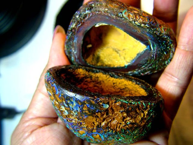 The Koroit opal field is an opal mining area in Paroo Shire in South West Queensland, Australia. It is known for the very distinctive type of boulder opal that is found in its mines. In Queensland boulder opal is found within a 300 km wide belt of sedimentary rocks in the Winton Formation. Here opal is found as a kernel in small concretions