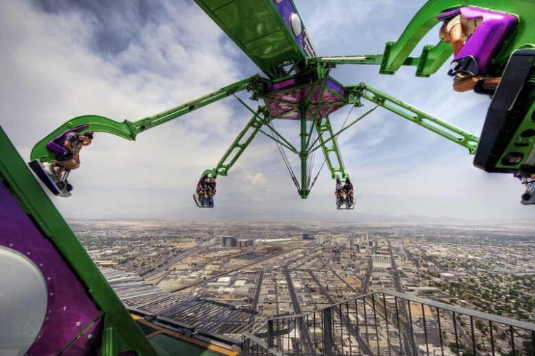 Hovering 270 meters above ground and 20 meters over the edge of Las Vegas’ Stratosphere Tower, these spinning mechanical arms will get your heart pounding probably even before you’ve strapped yourself to a seat. It’s not the only ride offered at the 350-meter Stratosphere Tower, the tallest freestanding observation tower in the United States. But it’s the one most likely to make you question your sanity.