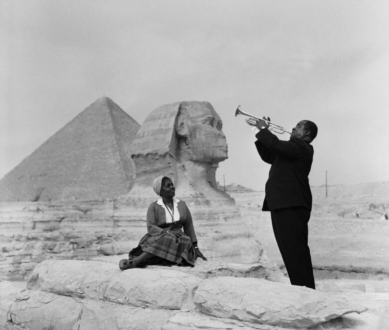 20. Louis Armstrong plays for his wife in Gaza, 1961.