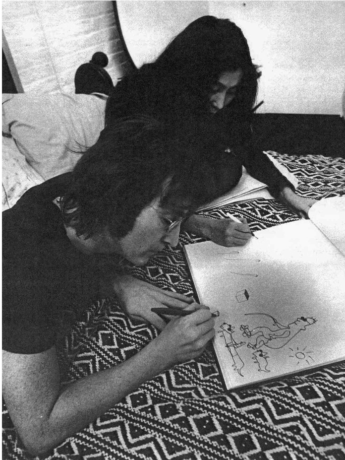 21. John Lennon and Yoko Ono drawing together at their Greenwich Village Apartment, 1972.