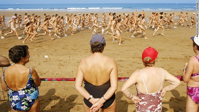 There’s a strict dress code for this race — a cap or hat, sunglasses, socks, footwear and nothing else.Formally called Patxi Ros Trophy, the race was initiated by Patxi Ros, sports and naturism lover, in 1999.In 2003 it was taken over by the Basque Country Naturist Club, which uses it to promote the naturalist way of life.