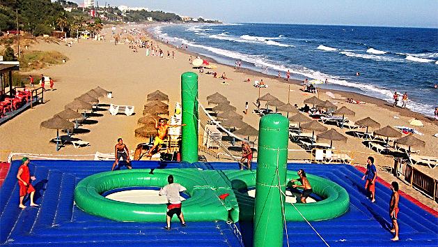 Bossaball combines soccer, volleyball, gymnastics and capoeira, and is played on a big bouncy trampoline-like surface. Players try to ground the ball on the other side of the net. It takes skill and athleticism, but most of all a childish sense of fun.