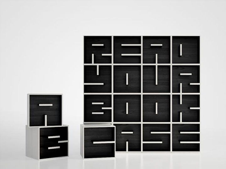 What better describes reading and writing in the most basic way, if not … a bunch of letters? A witty and stylish bookshelf design indeed.