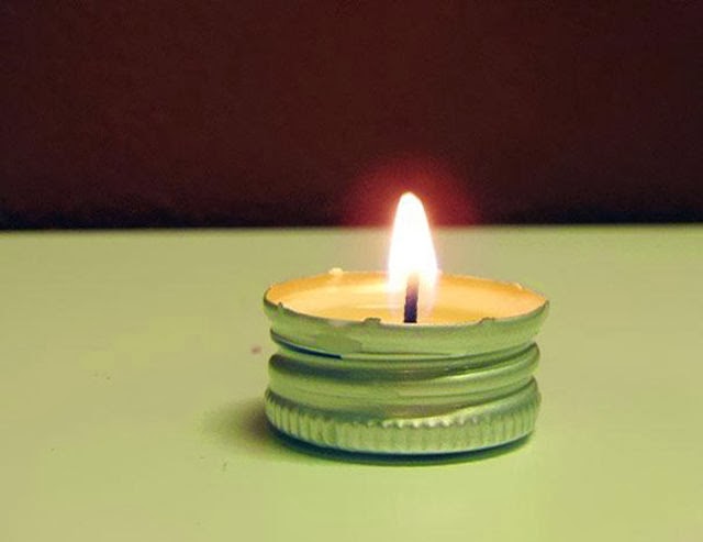 Even glass bottle sealed cap can be used as tea light. In fact, that looks way prettier.