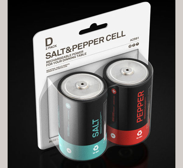 A completely different aspect to a salt and pepper shaker that potrays a rechargeable power for your dining table!