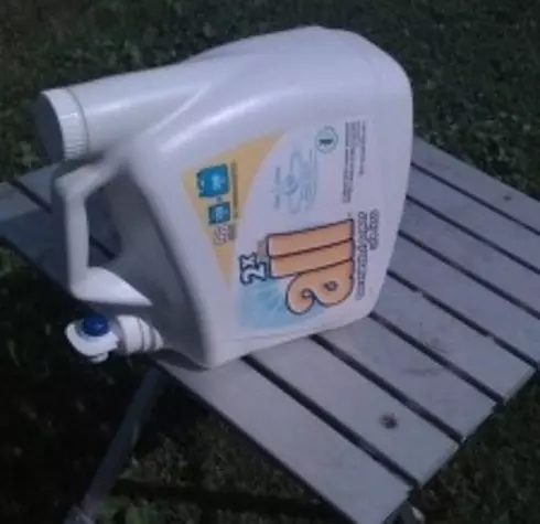 9. Fill up an empty laundry detergent dispenser and use it as a hand-washing station.