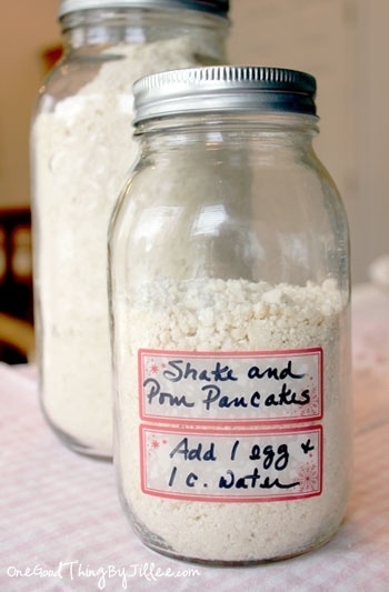 33. Make pancakes with pre-made pancake mix using shortening and dry milk, which don’t need to be refrigerated.