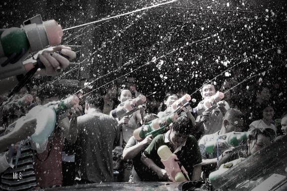 The Thai New Year festival falls on some of the hottest days in Thailand, and people celebrate by throwing water on each other, using water guns, buckets, hoses- whatever they can get their hands on. Sometimes chalk or menthol (the latter causes a cooling sensation) is mixed into the water to create a paste which people smear on each other’s faces for good fortune. Elephants can also be seen walking around and splashing off water jets at people!
